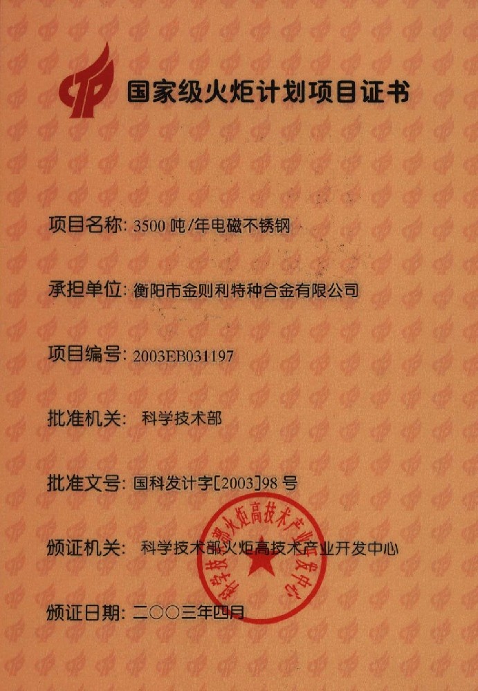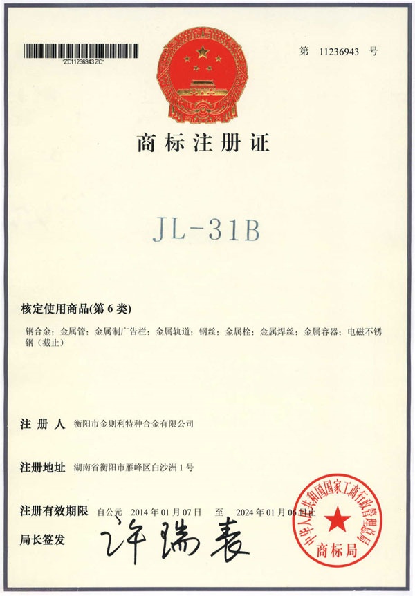衡阳市金则利特种合金股份有限公司成立于一九九九年十二月,注册资本人民币两千两百万元。注册地址:衡阳市雁峰区白沙洲工业园长塘路2号。公司主营耐蚀软磁合金,为湖南省高新技术企业。公司自成立以来,即致力于耐蚀软磁合金的研发。 研制出的JL-31(00Cr13si2Pb)、JL-31B(00Cr13si2)、JL-31BS(00Cr13Si2S)、JL-37B(0Cr17Si2)、JL-37(0Cr17···